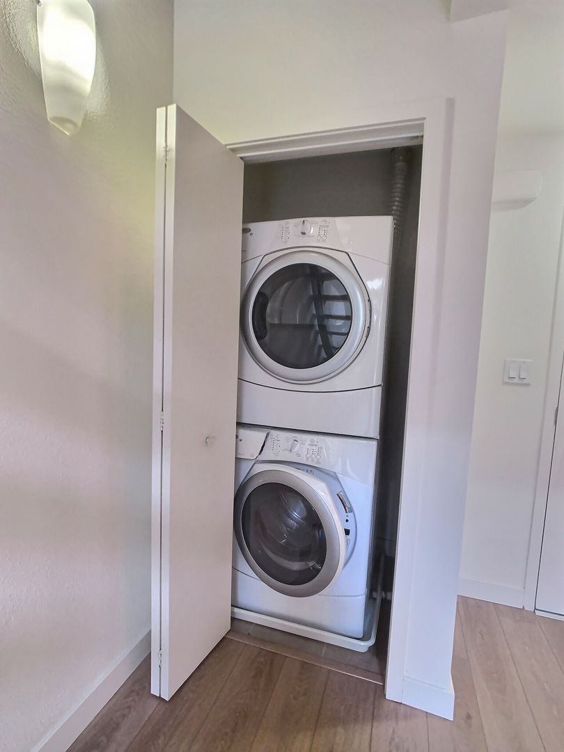 This lovely loft has 1 bedroom and 1 1/2 bathrooms in 841 square feet of space. When you enter the condo, you are met with an open floor plan with a balcony and tall, expansive windows that let in tons of natural light with remote roller shades. Beautiful hardwood floors are found throughout. The modern kitchen features granite countertops, imported European cabinetry with soft-close drawers, and stainless steel appliances including a new refrigerator. You’ll find a large half bathroom on the first level, as well as full-sized washer and dryer. The second floor loft bedroom suite is open to the living space below and features a full bathroom with tile floor, granite counter, and tub/shower combo.