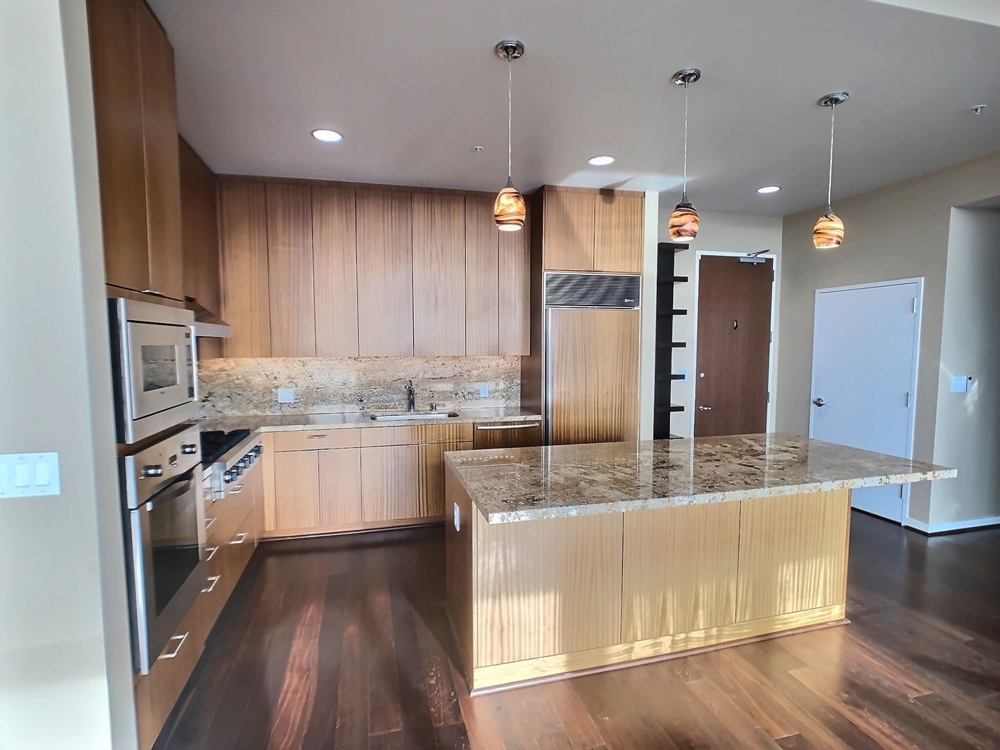 As you enter this west facing unit, you’ll be immediately struck by the floor-to-ceiling windows with expansive views to the hills of West San Jose. The outdoor balcony gives views for miles to the north and west including the SAP Center and San Jose Airport, enjoy beautiful sunsets daily. Warm hardwood floors can be found in the entry, living area, kitchen, and hallway. The gourmet kitchen is open to the living area boasting a large island, granite countertops, and stainless steel appliances including a gas stove top and Sub-Zero Fridge.